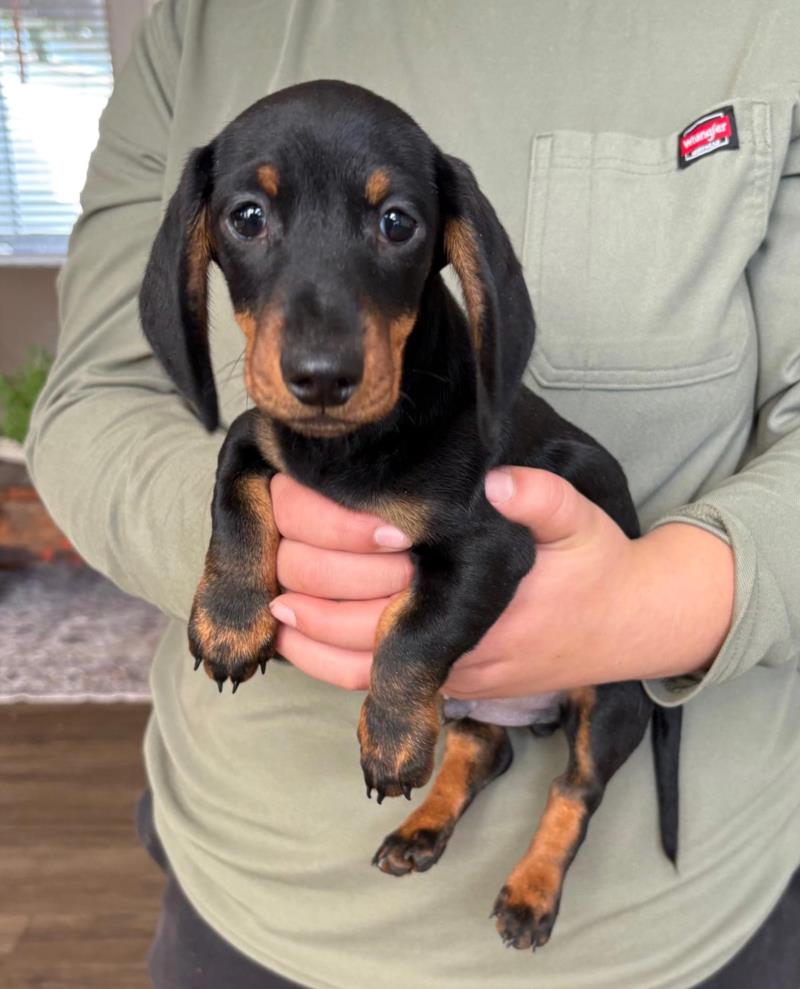 Born 7/27/25 ready to rehome 9/9/25. We have one black and tan male and one red male available. Please call for more information.