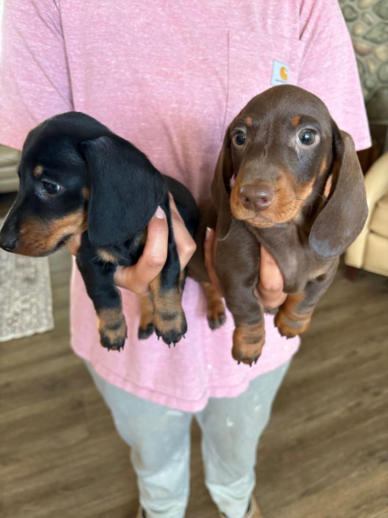 Born 7/27/25 ready to rehome 9/9/23. We have one chocolate male, one black and tan male. Please call for more information.